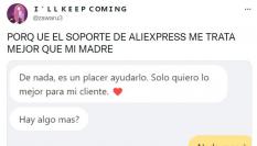 Horas después, el CM de Aliexpress mencionó el tuit de otro usuario en el que mostraba esa misma carcasa comprada en la web china. “Tarde. Aliexpress ya las ofrecía mucho antes y más baratas”, comentaba en su publicación. “Los expertos nos avalan”, comentaba la cuenta de Aliexpress respecto a ese tuit.