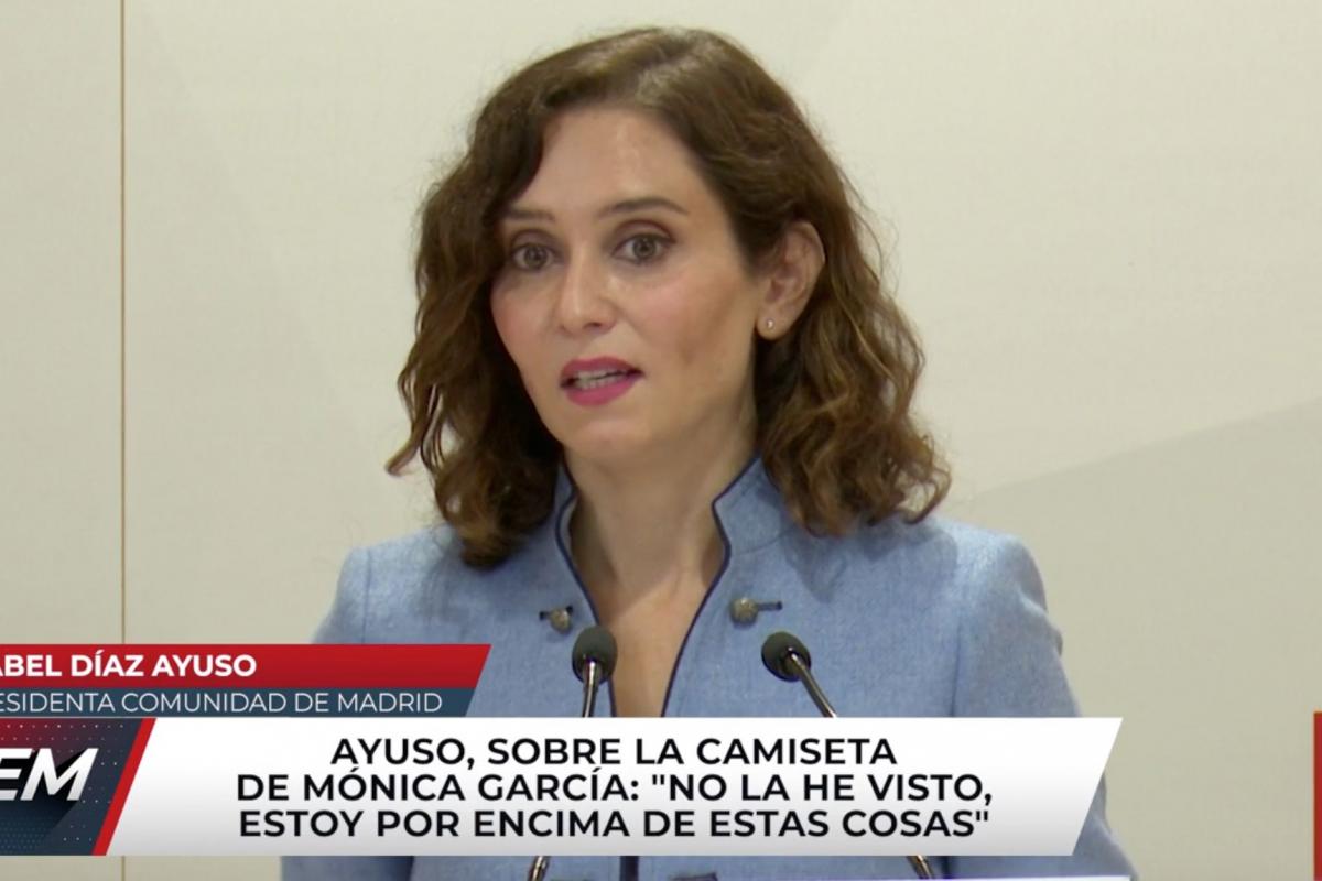 Isabel Díaz Ayuso se ha pronunciado sobre la camiseta que ha puesto en circulación Más Madrid. La líder del partido, Mónica García, ha compartido en Twitter una prenda de color blanco con las letras en verde en la que se puede leer: “A mí también me ha insultado Ayuso”.