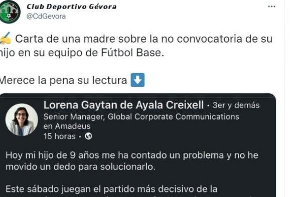 La carta en Twitter la ha publicado la cuenta del Club Deportivo Gévora y se ha hecho viral. En pocos días ha superado los 18.900 compartidos y 70.400 me gusta.