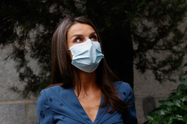El tiempo no acompañó, con una tarde lluviosa y desapacible en la capital, pero esto no se reflejó en el aspecto de la reina. Doña Letizia recuperó un ‘look’ que mostró por primera vez en Santiago de Compostela en 2018 y que ha lucido en al menos tres ocasiones.