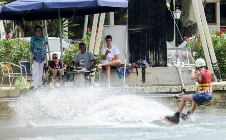 Miguel, el tercero de los Urdangarin (de 15 años), llevaba el brazo izquierdo vendado, por lo que no pudo unirse al grupo. Sin embargo, intentó navegar con una tabla para poder refrescarse.