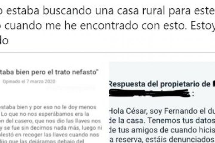 “La casa estaba bien pero el trato nefasto”, dice la reseña de un inquilino a una casa rural. En el texto, el usuario valora de forma positiva la casa pero critica “la mala educación del casero”.