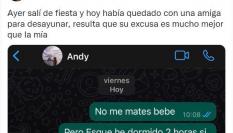 “Mi madre cogiéndome cita para las uñas”, ha escrito junto al pantallazo de WhatsApp en el que se ve cómo ocurrió todo. “Dime día y hora”, pide la madre. “Y ella contesta: La semana que viene cualquier día menos el 1. Y cualquier hora. El miércoles 1 no”.
