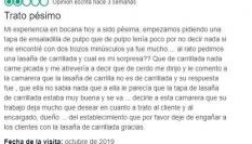 El usuario ha eliminado el comentario de la plataforma después de la avalancha de réplicas en TripAdvisor y de que el propio camarero le respondiese en el periódico La Nueva España.