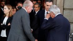 El rey emérito Juan Carlos I, Pedro Sánchez y Felipe González, en la capilla ardiente de Rubalcaba.