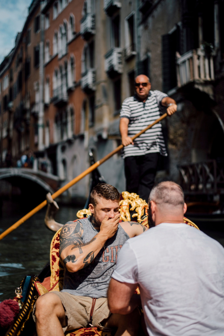El 28 de julio, la sorpresa siguió adelante cuando Patrick se arrodilló ante Jimmy para pedirle matrimonio durante un recorrido en góndola a través de los canales de la ciudad italiana. La propuesta fue una auténtica sorpresa para Jimmy, quien asegura a la edición estadounidense del HuffPost que le cuesta recordar los detalles de aquel momento porque se quedó en completo shock.