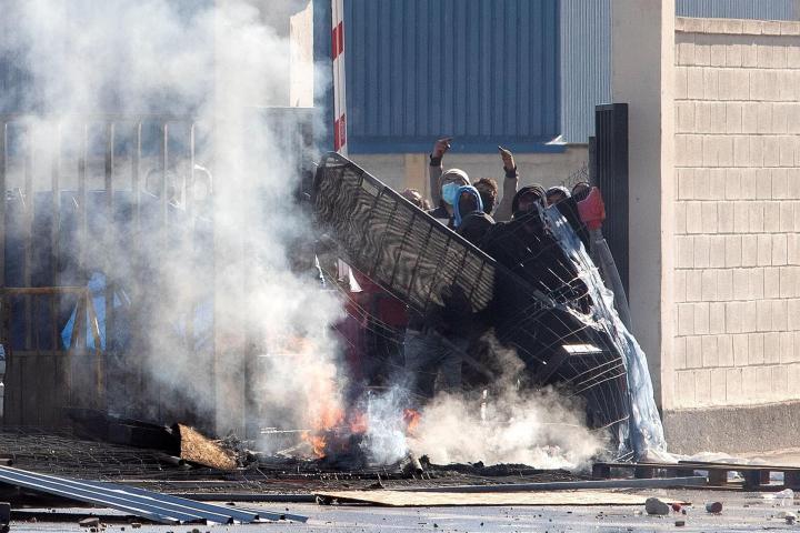Fuentes sindicales han asegurado que durante la noche unos 40 operarios han permanecido encerrados en la planta de Navantia en Cádiz, donde ayer se produjeron enfrentamientos.