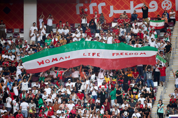 Con lágrimas, carteles y peticiones como “por favor, contad nuestra historia”, el pueblo iráni, mayoría en el duelo entre Inglaterra e Irán, se unió a las protestas durante el segundo partido de esta Copa del Mundo.