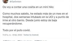 Para ese tuitero la conclusión era que la naranja había dado positivo por coronavirus. O, lo que es lo mismo, deja caer que los test son un engaño.