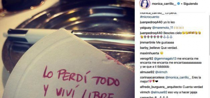 "Lo perdí todo y viví libre", decía el microcuento que Carrillo publicó este jueves en su cuenta.