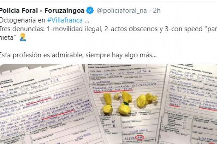 La Policía Foral de Navarra ha compartido en su perfil de Twitter las tres sanciones que se vio obligada a poner este miércoles a una anciana de 80 años que se saltó la cuarentena.