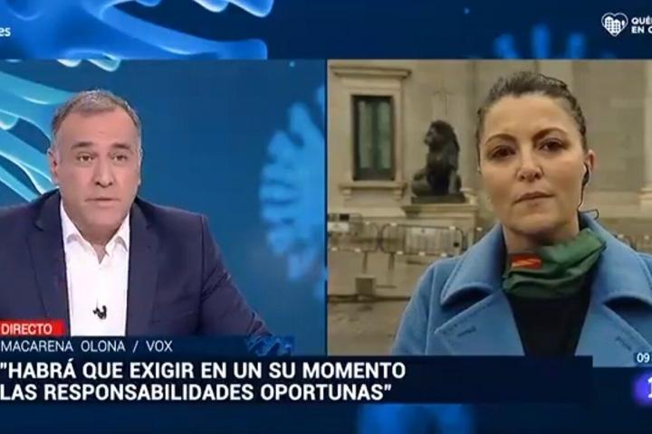 Olona ha utilizado la conversación que estaba manteniendo con el periodista para arremeter contra la televisión pública, especialmente por la emisión del espacio de humor Diarios de cuarentena.