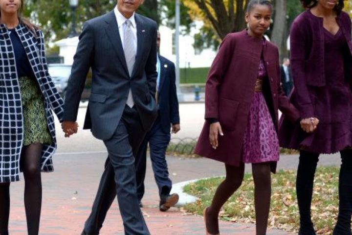 En la foto se puede ver a Obama con sus dos hijas —Sasha y Malia— cuando estas eran pequeñas.