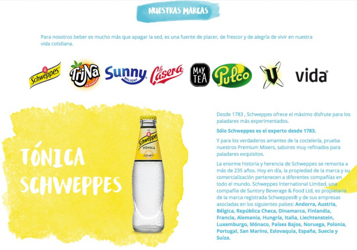 La tónica Schweppes nació en 1783, pero llegó España en 1957. Esta marca siempre ha sido líder de ventas en este tipo de bebida, con una cuota de mercado del 54,8% el año pasado, y ha vivido un fuerte incremento de las ventas por la popularización del gin-tonic en la última década.