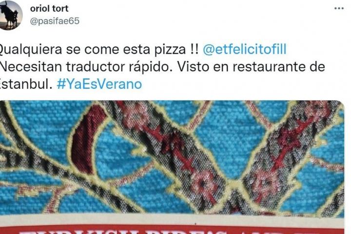 El último ejemplo lo ha compartido en Twitter el usuario Oriol Tort. El tuitero ha publicado una imagen de la traducción al español de una pizza que se ha encontrado en un restaurante de Estambul.