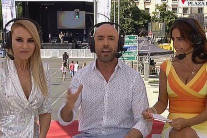 Emilio Pineda, que conduce la retransmisión de Telemadrid junto a Berta Collado y Carmen Alcayde, ha aparecido gesticulando de manera ostensible y haciendo señas a los compañeros de control por algún problema con el audio.