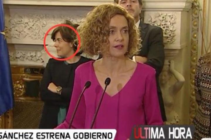 Las cámaras de Las Mañanas de Cuatro han captado un curioso momento mientras Batet hablaba de Cataluña: la cara de Soraya Sáenz de Santamaría.