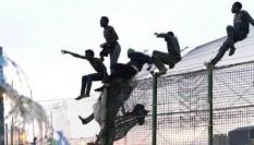 Alrededor de un centenar de inmigrantes encaramados a la valla fronteriza con Marruecos (13 de agosto).