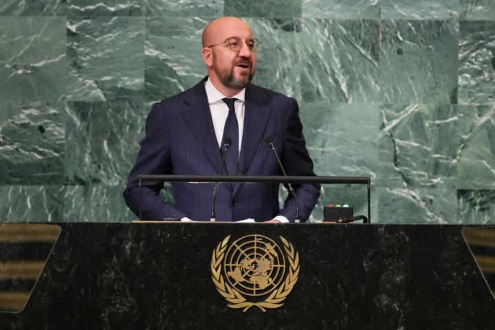 Durante su discurso, el presidente del Consejo Europeo, Charles Michel, ha defendido que deberían ser expulsados de manera “automática” los miembros permanentes si provocan una guerra “no provocada e injustificable”.