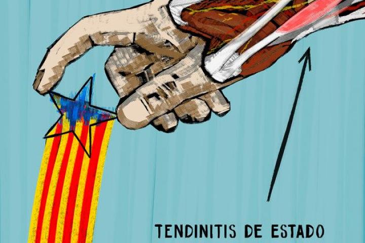 La tendinitis diagnosticada en la muñeca de la mano derecha se ha trasladado a la izquierda. La vaina que cubre el tendón del Estado sigue inflamada. La continuada pinza catalana bloquea el movimiento del tendón y limita los movimientos de la mano con dolor.