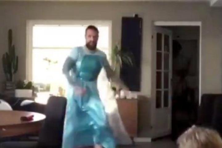 Lo hizo un día en el que su pareja no estaba en casa y ambos se disfrazaron de Elsa, la protagonista de la película de Disney Frozen, que Dexter considera una superheroína. Los dos se enfundaron el vestido azul de la princesa de Arendelle y luego siguieron la fiesta bailando el conocidísimo ¡Suéltalo! (Let it go!).