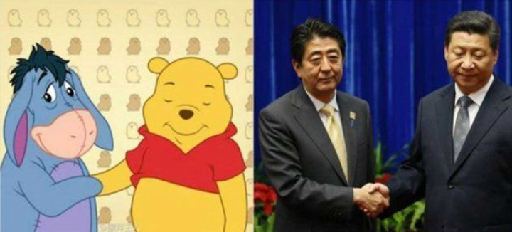En 2014 un apretón de manos entre el máximo mandatario chino junto al ministro japonés, Shinzo Abe, también se hizo famoso después de que los compararan con Pooh y su amigo, el burro Eyeore (Ígor en la traducción al español).