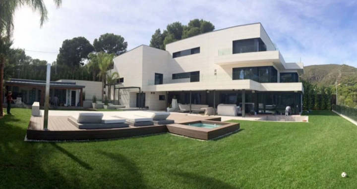 La casa en la exclusiva urbanización Bellamar, donde residen otros futbolistas, le costó seis millones de euros. El inmueble cuenta con varias terrazas, grandes ventanales, piscina, jardín y un pequeño campo de fútbol.