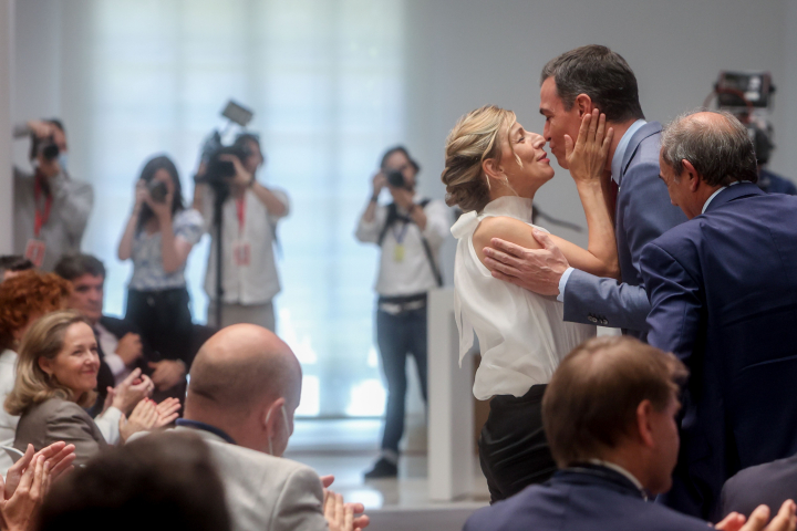 Este pie de foto bien podrían escribirlo Peli de Tarde o Mr. Handsome. El momento y el escenario en que se disparó la fotografía son casi lo de menos, pero reflejan la buena sintonía entre el presidente Pedro Sanchez y la vicepresidenta Yolanda Díaz, y quizás también el tándem que podrían formar (o no) en un futuro no muy lejano. Díaz ha sido la política revelación esta temporada por los ERTE, la reforma laboral, la subida del SMI… pero también por lanzar la plataforma política Sumar, sobre la que todavía hay más incógnitas que certezas, y que aparentemente trae más de cabeza a la izquierda que a la derecha.