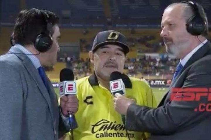 Para Maradona queda demostrado que sí. Atención a la respuesta (¿se le puede llamar respuesta a esto?) que dio a estos dos periodistas de la cadena ESPN Argentina tras la victoria de su equipo, los Dorados de Sinaloa, frente al conjunto de Juárez (2-0).