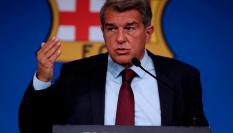 Una periodista ha leído a Laporta el tuit del presidente de LaLiga, a lo que Laporta ha contestado provocando unas carcajadas iniciales entre los presentes en la sala de prensa.