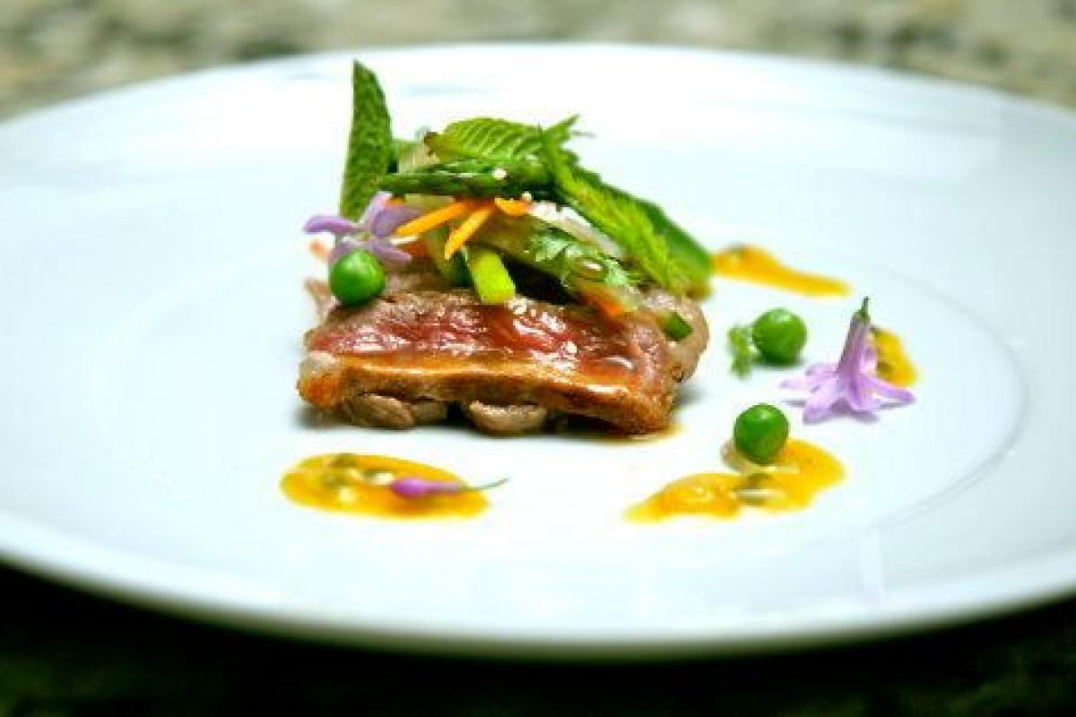 Depositar una cucharada de salsa oriental en el centro del plato. A continuación, hongos y setas. Cortar la carne en lardones de 1cm de ancho X6cm de largo. Sazonar. Servir inmediatamente con una ensalada de vegetales y hiervas aromáticas.