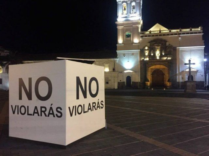 La acción artística No violarás de la guatemalteca Regina José Galindo se basó en situar estas dos palabras en diversos espacios públicos como la plaza del Pilar de Zaragoza y en ciudades como Montevideo, Quito o Ciudad de Guatemala. Este mandamiento —con evidentes alusiones religiosas— interpela a un sujeto impersonal, pero, a la vez, nos atañe a todos y todas, cualquiera puede sentir que esas dos palabras le conciernen. Las reacciones a la obra fueron de rechazo, asegurando que “criminalizaba a los hombres” y con anónimos que la llenaron de mensajes como “si visten como putas las trataremos como a putas, pero sin pagar”.