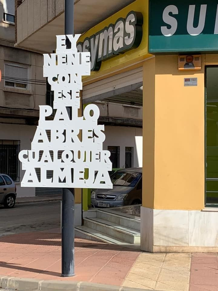 No hace ni seis meses, en noviembre de 2020, a propósito del 25N Día Internacional contra la violencia hacia las mujeres, la artista valenciana Vero McClain instala en varias calles de El Verger una serie de frases que muestran el acoso callejero que son “los piropos”. Son parte de la campaña del ayuntamiento para reconocer estas expresiones como degradantes para las mujeres y lo hacen cambiando el sexo del receptor, es decir, como si las mujeres se dirigieran así a los hombres. Ni un día aguantan en la calle. Las frases son arrancadas y tiradas a la basura en apenas 24 horas. Precisamente esta reacción muestra lo necesario que es aún hoy dar a entender que los cuerpos de las mujeres no quieren la opinión y la valoración de nadie. Nadie te ha pedido el comentario, guárdatelo.