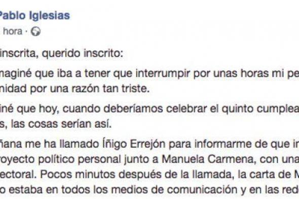 3- "No doy crédito a que Manuela e Íñigo nos hayan ocultado que preparaban lanzar un proyecto electoral propio"