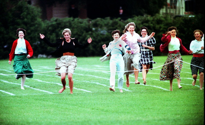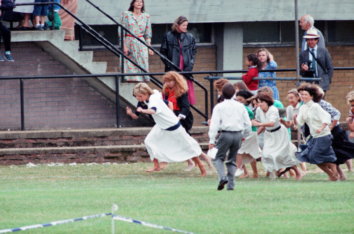 Sin importarle el protocolo y haciendo gala de su buen humor, la princesa Diana se descalzó y participó en las carreras de atletismo de la Escuela Wetherby, a la que acudía el príncipe Guillermo.