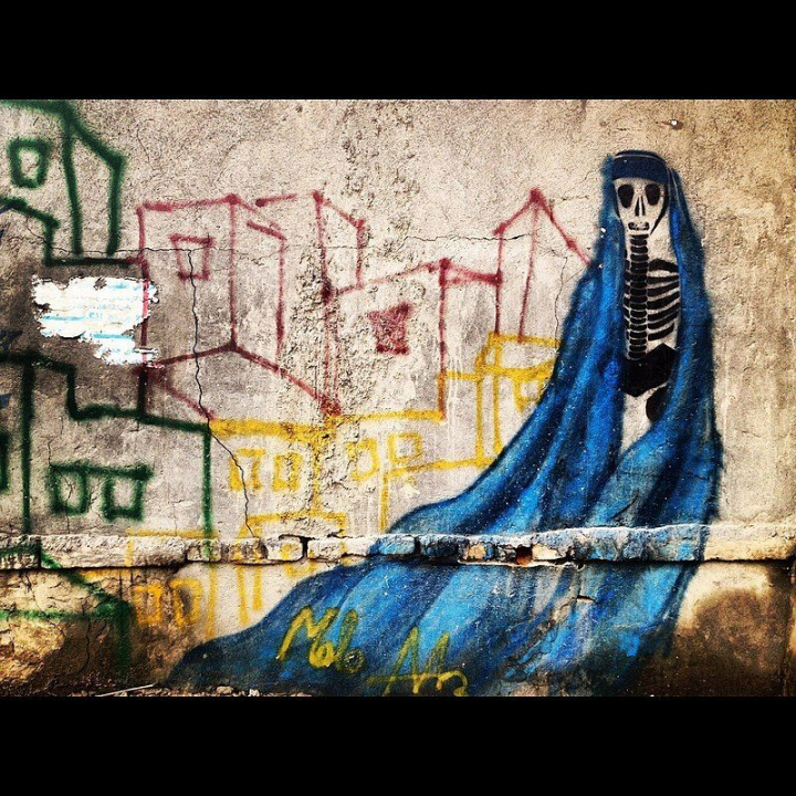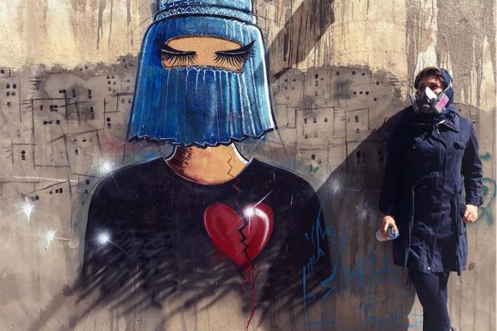 Shamsia Hassani (1988) nació en Teherán (Irán) de padres originarios de Kandahar, huidos durante la guerra. Hassani es una de las primeras grafiteras de Afganistán. A través de sus obras Shamsia retrata a las mujeres afganas en una sociedad dominada por los hombres.