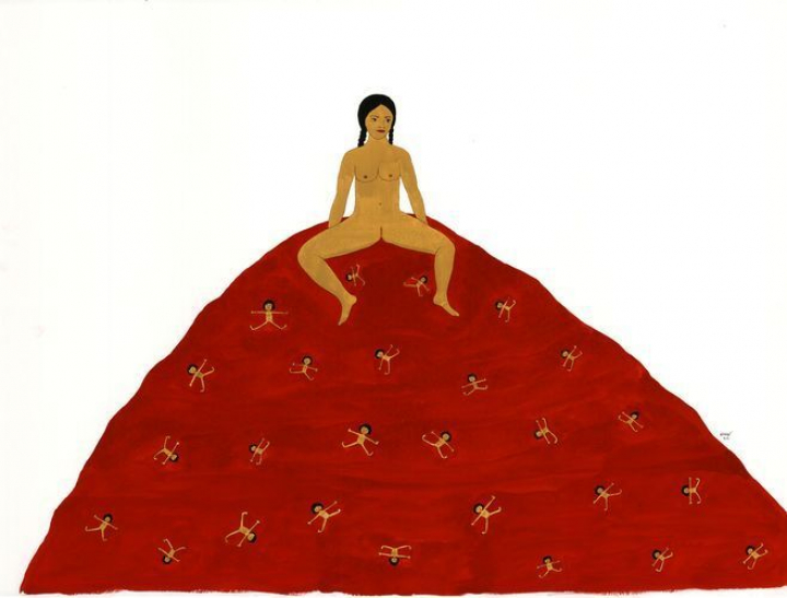 Una de las que más críticas recibió fue un esqueleto portando un burka; Suliman se defiende: “es un autorretrato”. Una imagen de cómo la han hecho sentir en sus poco más de 30 años.