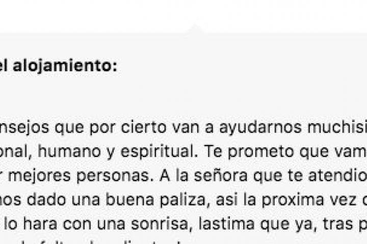 La historia la ha convertido en viral el usuario The Gary, que se hospedó este verano y, como cuenta, cuando fue a dejar su comentario vio el panorama. A veces utiliza la sutileza para contestar con firmeza.