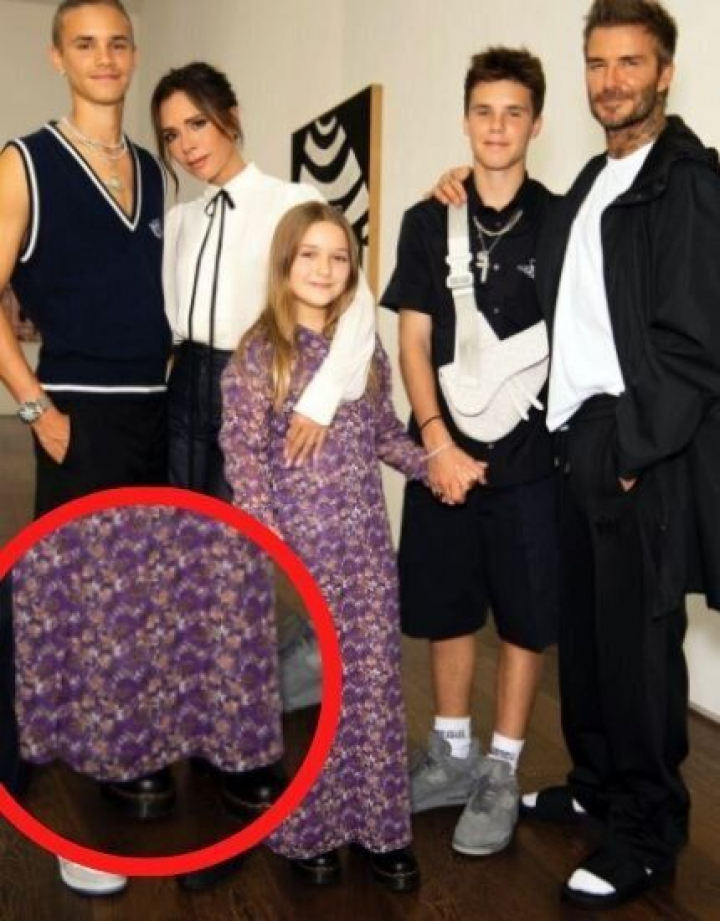 Sonrientes, con las manos entrelazadas o abrazados, los Beckham posan mostrando la elegancia y modernidad de la que hacen gala. Todos visten conjuntados en blanco y negro, excepto la pequeña Harper Seven, que lleva un vestido morado de flores diseñado por su madre.