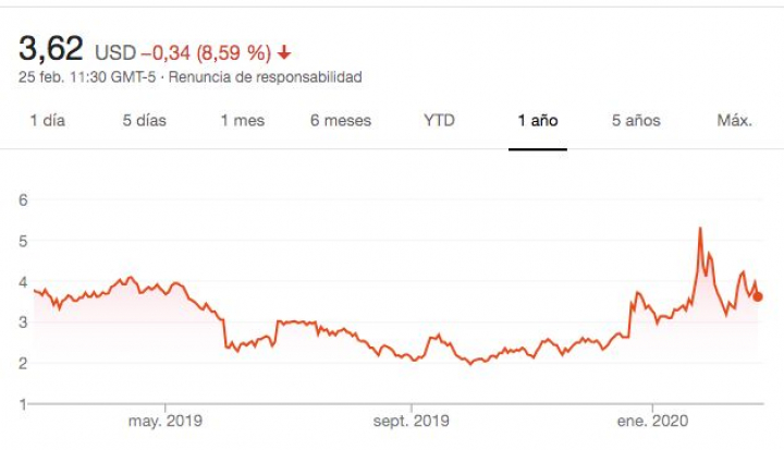 La empresa se ha visto claramente beneficiada por este virus en su cotización en el Nasdaq. Las acciones vivieron un repunte del 40%, al pasar de valer 3,66 dólares estadounidenses hace un año a alcanzar los 5,32 dólares en su punto máximo, el 27 de enero.