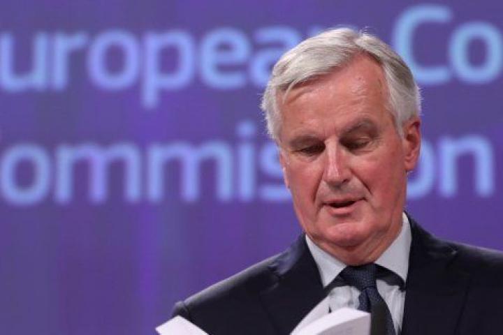 Barnier ofrece declaraciones a los medios.