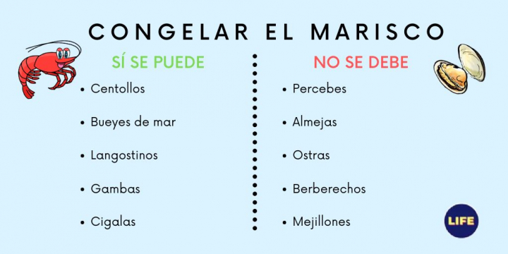 Siempre que vayamos a congelar marisco, conviene preguntar antes al pescadero si se puede hacer o no ya que nunca puede volver a congelarse un alimento que ya haya sido descongelado. Esto es crucial en ciudades como Madrid, muy alejadas del mar, donde el producto muchas veces ya ha sido congelado antes de ponerse a la venta. “La mayoría del marisco que entra en Madrid viene congelado”, aseguran desde Pescadería Víctor.