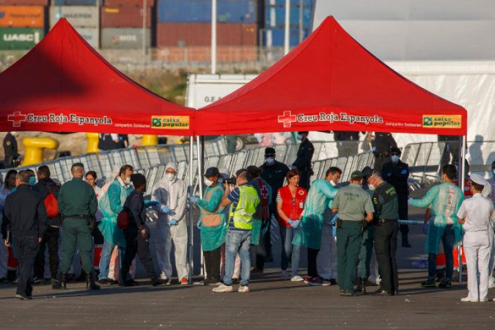 Los migrantes han desembarcado en grupos de aproximadamente cinco personas tras haber sido inspeccionados por técnicos de Sanidad Exterior a bordo. Una vez en tierra, han sido acompañados a unas carpas dispuestas en el puerto en las que han recibido atención sanitaria y han sido identificados por personal de Interior. Las personas que precisaban una mayor atención médica han sido trasladadas directamente al hospital. Ese ha sido el caso de personas que presentaban lesiones, patologías o situaciones de vulnerabilidad como las mujeres embarazadas (un bebé llegó a nacer a bordo durante la travesía).