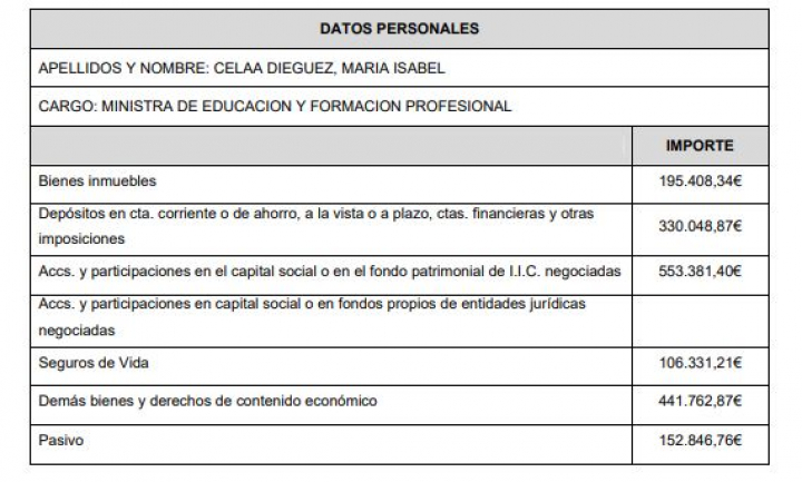 En total, según explicó la ministra portavoz del Gobierno, Isabel Celáa, son los datos de 1.062 altos cargos, entre los que hay 38 ministros o exministros y 74 secretarios de Estado. Pero también subsecretarios, directores generales, presidentes de empresas públicas, miembros de organismos reguladores y Casa Real, entre otros.