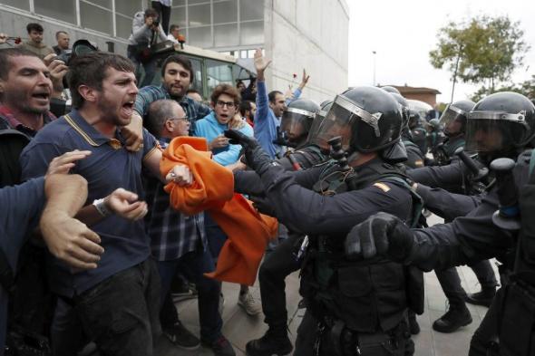 Se ha podido ver cómo algunos agentes usaron las porras y dieron golpes y patadas para desalojar los centros de votación.