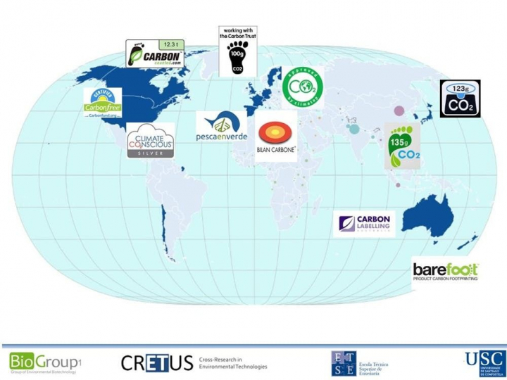 Este indicador ha cuajado de forma importante en el sector de la alimentación, existiendo diversas ecoetiquetas que certifican su valor (figura 1). Dichas ecoetiquetas se pueden agrupar en función de la información que transmiten al consumidor. Por ejemplo, pueden indicar bajos niveles de emisiones (Climatop – Suiza), el ranking de los niveles de emisión (ConsciousTM – EE. UU.), la puntuación con la emisión (Carbon Trust – Reino Unido) y el neutro en carbono (Climate Neutral Product – Holanda).