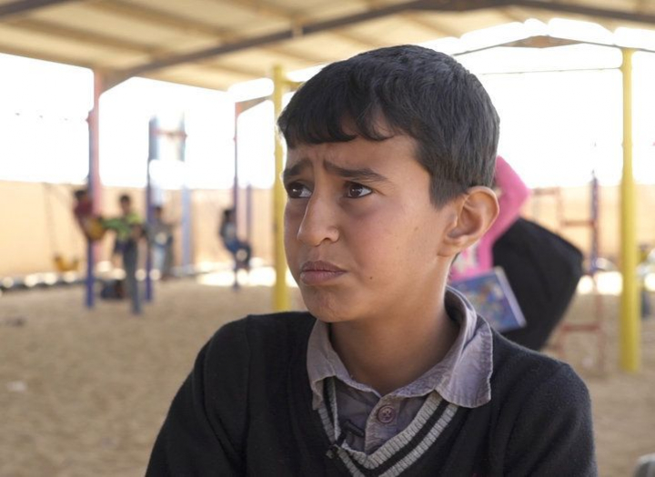 Halaf tiene 14 años y huyó de Alepo el día después de que la bomba de Assad impactara en el campo, muy cerca de su casa. El niño estaba refugiándose detrás de una pared que colapso, causándole una fractura en la mano. Cuando llegó al campamento de Azraq hace 18 meses estaba frenado por el miedo constante.