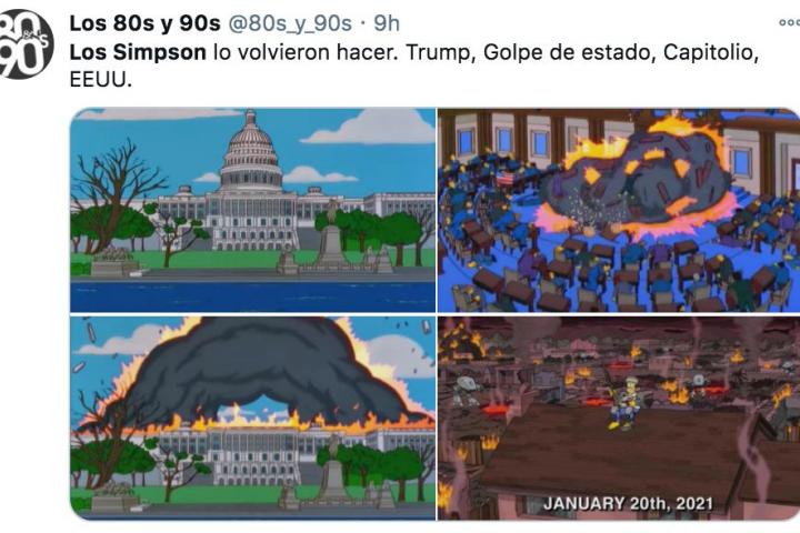 No hay acontecimiento histórico sin que alguien recupere algún símil en Los Simpson. Y el asalto al Capitolio de este miércoles no iba a ser menos. Este jueves por la mañana Los Simpson se convertía en tendencia en Twitter en España y el motivo no era otro que las imágenes premonitorias que la familia de Springfield habían dejado sobre el histórico incidente en las cámaras legislativas estadounidenses.