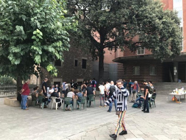 ¿Y las llaves dónde estaban? "Las conseguimos", contestan escuetamente. La verja está abierta y una chica está en la puerta con una mesa y una caja de donativos para la resistencia. Con ironía han escrito "no es una urna". Han pasado la noche en colchonetas, se han mezclado algún padre, activistas proreferéndum y alumnos del cercano Institut del Teatre.