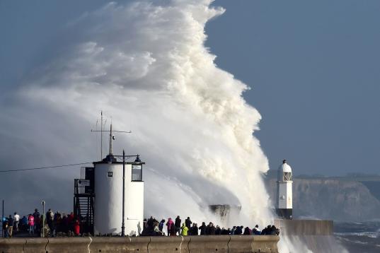La tormenta también golpeó al Reino Unido y Escocia, derribando árboles y líneas eléctricas, y provocando espectaculares olas que rompieron sobre las defensas de multitud de localidades costera. Algunos de los barcos que surcaban el Oceáno Atlántico tomaron también imágenes espectacular de la fuerza de las olas.